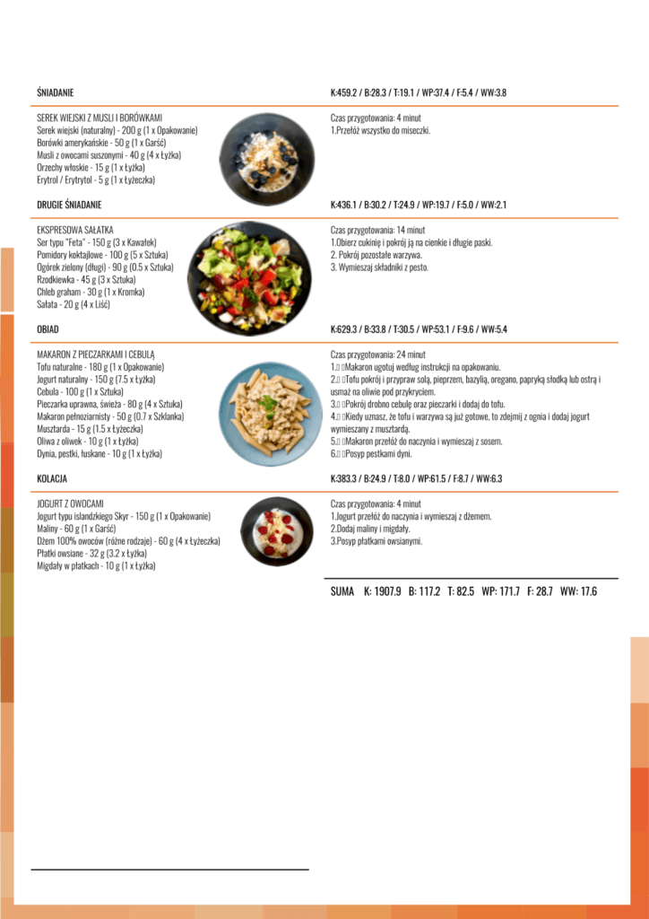 - Zalecenia do diety – kluczowe informacje, które pomogą w efektywnym korzystaniu z jadłospisu.